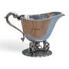 A planished silver pesdestal cream jug, by the Guild of Handicraft, London, 1931, the base as three hippocampus, their tails united beneath a sphere, upon a circular spreading foot, 8.3cm high, 198g P…