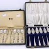 Set of Six Art Deco Sterling Silver Liberty Spoons & Sugar Tongs & Set of Six Sterling Silver Cake Spoons. The Liberty & Co Sterling Silver Spoons are hallmarked "L & Co", the anchor assay mark for B