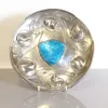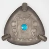 Archibald Knox for Liberty & Co - an English Pewter stylised designed Art nouveau ashtray, of curved triangular style shape with blue enamel roundel to centre, marked to reverse "English Pewter, 0898,…