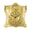 A Liberty & Co Tudric pewter and enamel mantel clock, early 20th century, the circular dial with a blue and green enameled centre surrounded by a copper chapter ring with Roman numerals, within a plan…