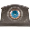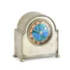 LIBERTY & CO: A TUDRIC PEWTER CASED ENAMELLED CLOCK — 20th Century The 3-1/2 inch blue/green enamelled dial with Roman numeral copper coloured chapter ring, spade hands, within a domed rectangular cas…