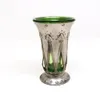 Liberty & Co; An early 20th century English Pewter vase, of fluted form with stylised and pierced Art Nouveau design to body and upon a circular slayed base, with original green glass liner, marked to…