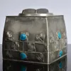 Arts & Crafts period pewter and enamelled biscuit barrel designed by Archibald Knox for Liberty & Co