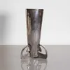 A Keswick pewter hammered bowl and beaker and a pair of pewter tulip organic vases on petal hammered base the beaker is marked Keswick pewter B 818 , stands 10 cm tall the bowl is marked Keswick Z 19