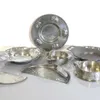 A collection of metalware to include; a Tudric pewter curved rectangular planished tray, approx. 50.8cm long; an English Pewter scrolled edged dish on four feet; a Norwegian tin planished bowl; an Art…