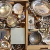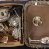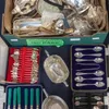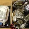 box of silver plated items and more