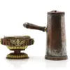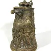 An unusual Victorian silver plated novelty brandy Warmer, c.1870, fashioned as a tree with owl perched on top with cauldron and cover hanging from a branch above the burner, the base with frog and fer…