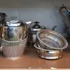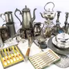 collection of silver plated items and metalware