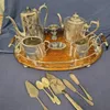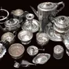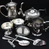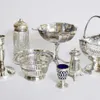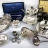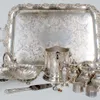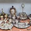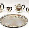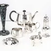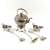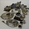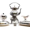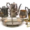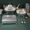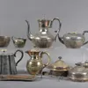 Silver plated tea/coffee set, serving dishes, cruet sugar basket, taste du vin and ham hock holder