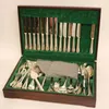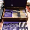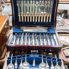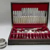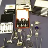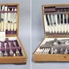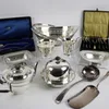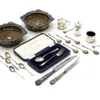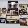 Two silver plated cutlery sets, a silver sauce boat by Mappin and Webb, large ladle and serving implements