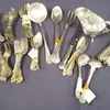 A quantity of silver plated items and objects. including tea service, cutlery, spoons, a salt and button hook.