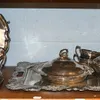 Quantity of Silver plated items including fruit bowl, three piece tea set, sugar sifter, flatware, etc....... (qty) Provenance: property of a deceased estate.