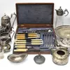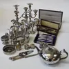 A collection of silver plate, early to mid 20th Century, pewter flatware etc.