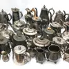 A vast selection of silver plated tea pots, mainly 19th or early 20th century, mixed designs along with a plated ewer with cover; couple of coffee pots; oval dish etc. (3 boxes)