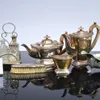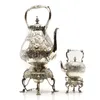 A collection of plated items to include: varying tea and coffee pots including an Egyptian style English tea pot, coffee pot and matching sugar bowl; a tall ewer; two small oval sauceboat stands; Chin…