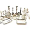 A good mixed lot of largely mid late 20th century EPNS. Including platters, a pair of Corinthian table candlesticks, 17cm, gallery tray, condiments, tea and other wares