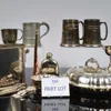 Various silver plated items to include, five meat skewers, largest length 35.5cm, a mug, height 9cm,