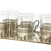 A GROUP OF PLATED WARES (QTY) — Comprising; one three piece tea set and one four piece tea set, a shaped oval twin handled tray, an asparagus draining rack and stand, a pair of asparagus servers, a se…