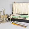 Cased Three-Piece Silver and Enamel-Mounted...