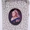 A late Victorian silver and enamel cigarette case, the body profusely engraved with foliage, the centre inset with a portrait oval enamel of HM Queen Victoria, hallmarked by Deakin & Francis, Birmingh…