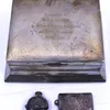 Art Deco period silver cigarette box and a pair of WWI medals