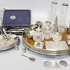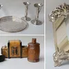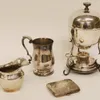 Silver Cigarette Box, a silver topped glass...