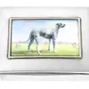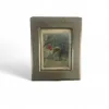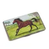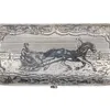 A German Silver Plated Cigarette Box of Hunting Interest, inscribed with a birthday dedication, the top centered with a hand coloured scene of two figures on horseback 8cm x 10cm x 5cm
