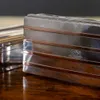 A Victorian silver playing card box, by Levi & Salaman, Birmingham 1899, with bevelled glazed panels to all sides with card underneath, three division red morocco sprung interior, raised upon four bra…