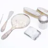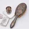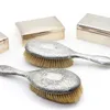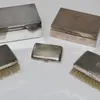 Two engine turned silver cigarette boxes, each cedar lined, together with two silver mounted brushes and a silver cigarette case. Various dates and makers