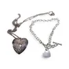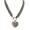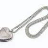 A Victorian silver vesta case, of heart shape with engraved foliate detail, hallmarked Birmingham, 1896, makers mark slightly rubbed possibly JG, upon later thick silver chain, total weight approx. 64…