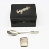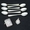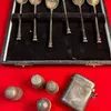 Boxed silver spoons (61.77g approx) hallmarked J.R Birmingham, a silver vesta case hallmarked H.W.Ld (23.67g) and four hallmarked thimbles (20.62g)