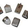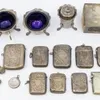 A "Sea Bean" vesta match case, together with a collection of sterling silver and other vestas The "sea bean" vesta, made from the seed pod of the Entada gigas plant, is mounted with white metal and fe…