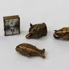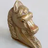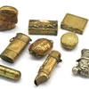 A small selection of novelty brass vesta cases to include: a King's head example with hinged mechanism; a novelty folded newspaper vesta with Daily Mail paper wrapped form; a vesta in the form of a tu…