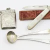A SILVER CURVED RECTANGULAR VISITING CARD CASE AND TEN FURTHER ITEMS (11) — The card case with floral and scroll engraved decoration, Birmingham 1909, also a silver vesta case, having engraved decorat…