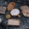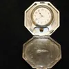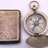 Sterling Silver hallmarked 'STERLING' travel case unmarked white metal pocket watch. Glass of pocket watch has a piece of glass broken