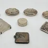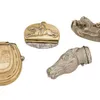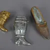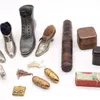 A collectors lot to include; an early to mid 20th century boot shaped metal hat pin holder, three smaller metal boot shaped pin cushions, a novelty small mouse shaped silver plated vesta case, a novel…