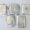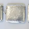 A Silver foliate design vesta case engraved initials on front, weight 41g. A Silver card case engraved M.J, total weight approx 67g- Birmingham Silver, Silver open cigarette case, approx 41g.