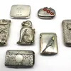 A collection of vesta cases and pillboxes, to include; a modern silver vesta case, in the form a a devil's head, with red paste set eyes, height 3.9cm, together with a nickel plated and composite vest…