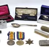 A Victorian silver christening teaspoon, by Robert Pringle & Sons, Birmingham 1900, in fitted case, together with a silver vesta, two WW1 medals, a British war medal and a Victory medal, awarded J.676…