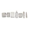 A silver rectangular engine turned box, by Alfred Dunhill & Sons, London 1963, length 3.7cm, together with two silver vestas, a sterling silver envelope form stamp holder and a sterling silver locket