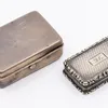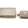 Two Sterling Silver Vinaigrettes. One of them is hallmarked with the anchor assay mark for Birmingham, a monarch duty mark, "J.T" makers marks, the lion passant mark for Sterling Silver and a date le
