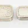 A GEORGE III SILVER VINAIGRETTE CUM BOX AND FIVE FURTHER BOXES (6) — The oval vinaigrette with a plain pierced grille and with a box compartment to the underside, probably as converted from a nutmeg g…