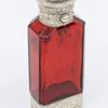 A Victorian silver mounted ruby glass combination scent bottle and vinaigrette, the silver engraved with scrolling foliage, the vinaigrette with ornate gilt grille and interior, the silver hallmarked