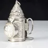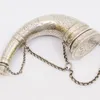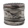 A 19th Century style white metal (untested) combination vinaigrette and scent bottle in the form of a snuff mull, the entire engraved with scrolling foliate decoration, the hinged top opens to reveal