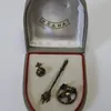 An interwar / WW2 era Queens Own IV Hussars diamond and enamel sweetheart brooch, along with two bi-metal collar badges (each with 2 lugs to the reverse side). Complete with its original leather fitte…