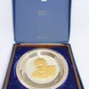 The Churchill Centenary Trust Plate 1974. The plate is Gold on Sterling Silver Plate. It is a Limited Edition plate created by John Pinches and was issued in 1974 in commemoration of the 100th Anniv