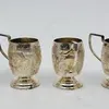 A set of six miniature Indian sterling silver tankards, the side repousse elephant and villager in a rural setting, height 5.5cm, in fitted case (this as found), together with a small Indian silver ci…