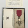 A post WW2 Civil issue MBE, with fitted case of issue, and the corresponding miniature medal. Notes: a handwritten card inside the case states that the award was presented to Councillor Cyril Farrand