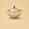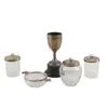A SILVER TROPHY CUP AND FOUR FURTHER ITEMS (5) — The trophy cup Birmingham 1931, three silver lidded glass preserve jars and a silver rimmed glass twin handled bonbon bowl, London 1894, weight of thre…