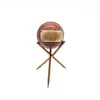 A novelty early to mid 20th century cricket ball trophy with silver gilt plaque to body "Lt. Col. Scudamore's XI vs King's Heath. Sept 6th 1942. D.L. Clugston. 19o. 57r. 5w." On a joint detachable thr…